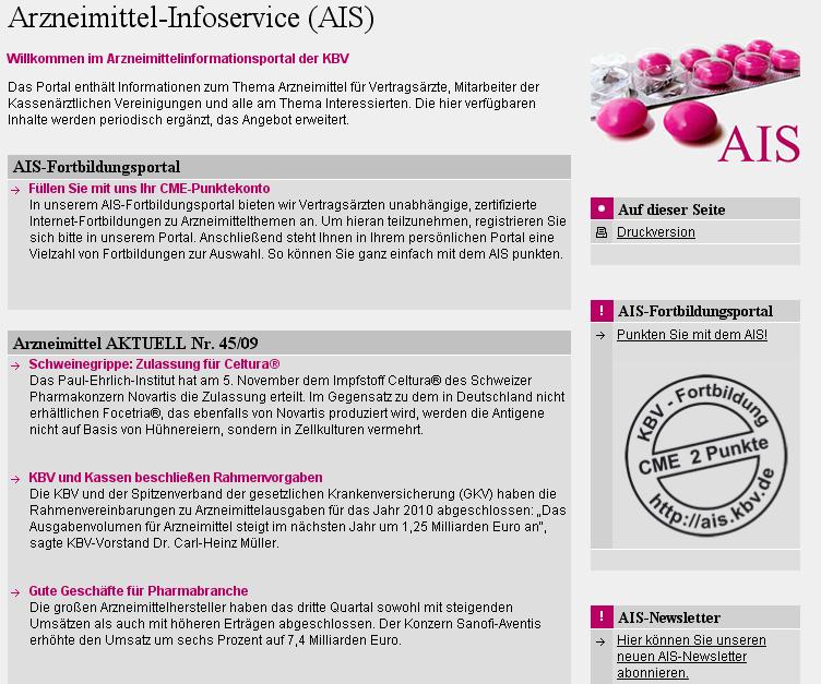 Internetportal Arzneimittel-Infoservice (AIS) der Kassenärztlichen
